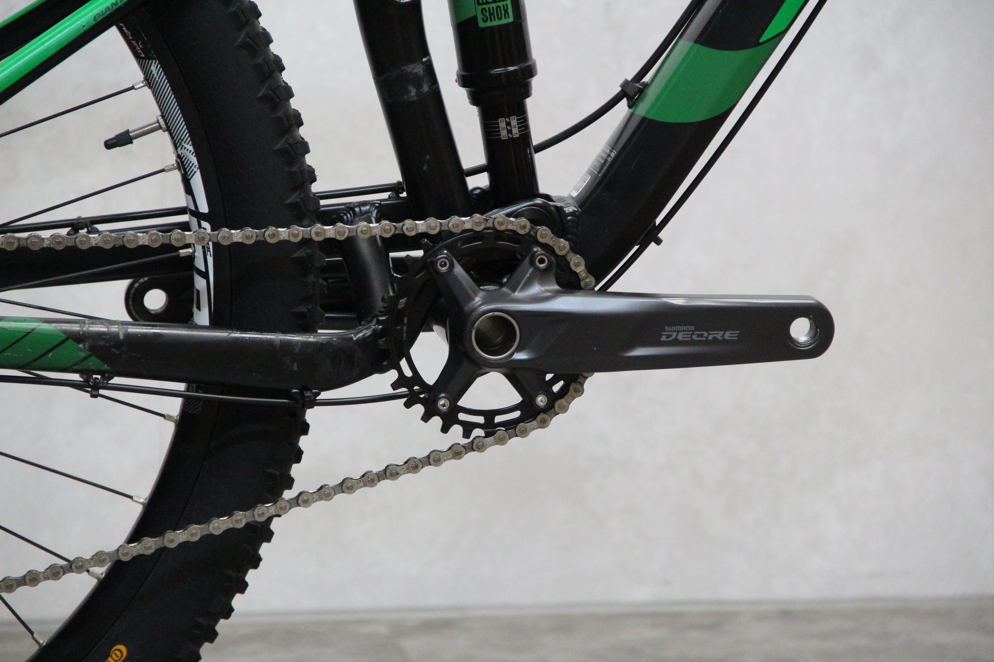 In great condition. Has just been serviced and is running great. As part of the service the bike had a brand new bottom bracket & new rear derailleur. It had both brakes bled & new pads fitted. The bike had a service & a few bits replaced shortly before we got it which included the forks, cranks & both wheels also.